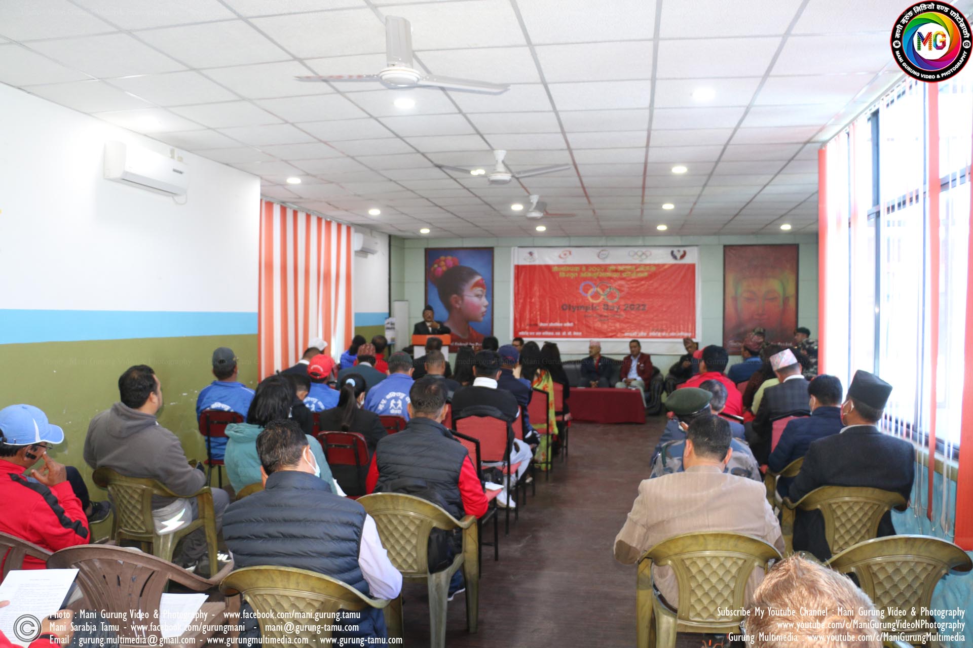 कार्यक्रममा आफ्ना भनाई राख्दै प्रदेश खेलकुद परिषद गण्डकीका सदस्य सचिव तथा नेपाल ओलम्पिक कमिटीका उपाध्यक्ष तेज गुरुङले विभिन्न समस्याका बाबजुद समेत खेलकुदले समाजमा खुसी र उत्साह भर्ने काम गरेको बताए । उनले ओलम्पिकको विभिन्न कालखण्डमा प्राप्त उपलव्धीको चर्चा गर्दै खेलकुद विकासका लागि राजनितिककर्मीहरुमा चेतना प्रवाह गर्न समाज नै अघि बढनुपर्ने उल्लेख गरे । सदस्य सचिव गुरुङले न्यून वजेटका कारण सोच अनुरुप खेलकुद विकास अघि बढ्न नसेकेको बताउँदै समाजमा खेलकुद संस्कृतीको स्थापना गर्न ओलम्पिक अभियानले भुमिका खेलेको बताए ।