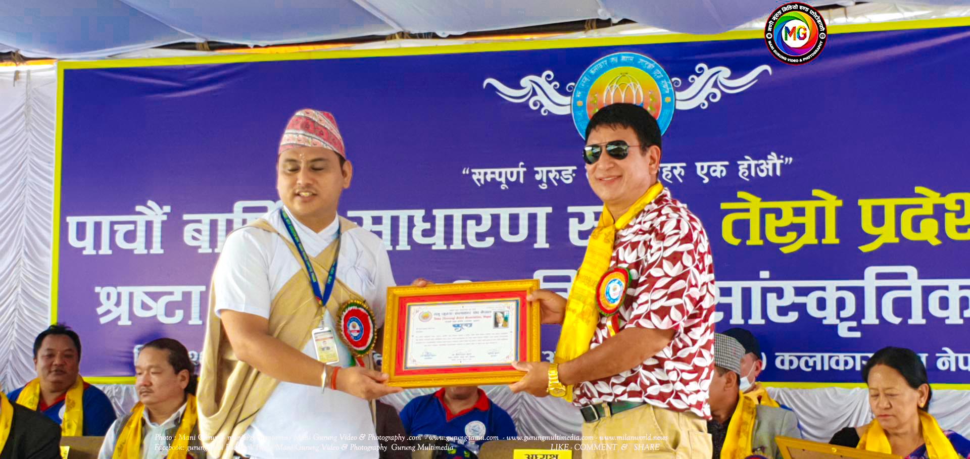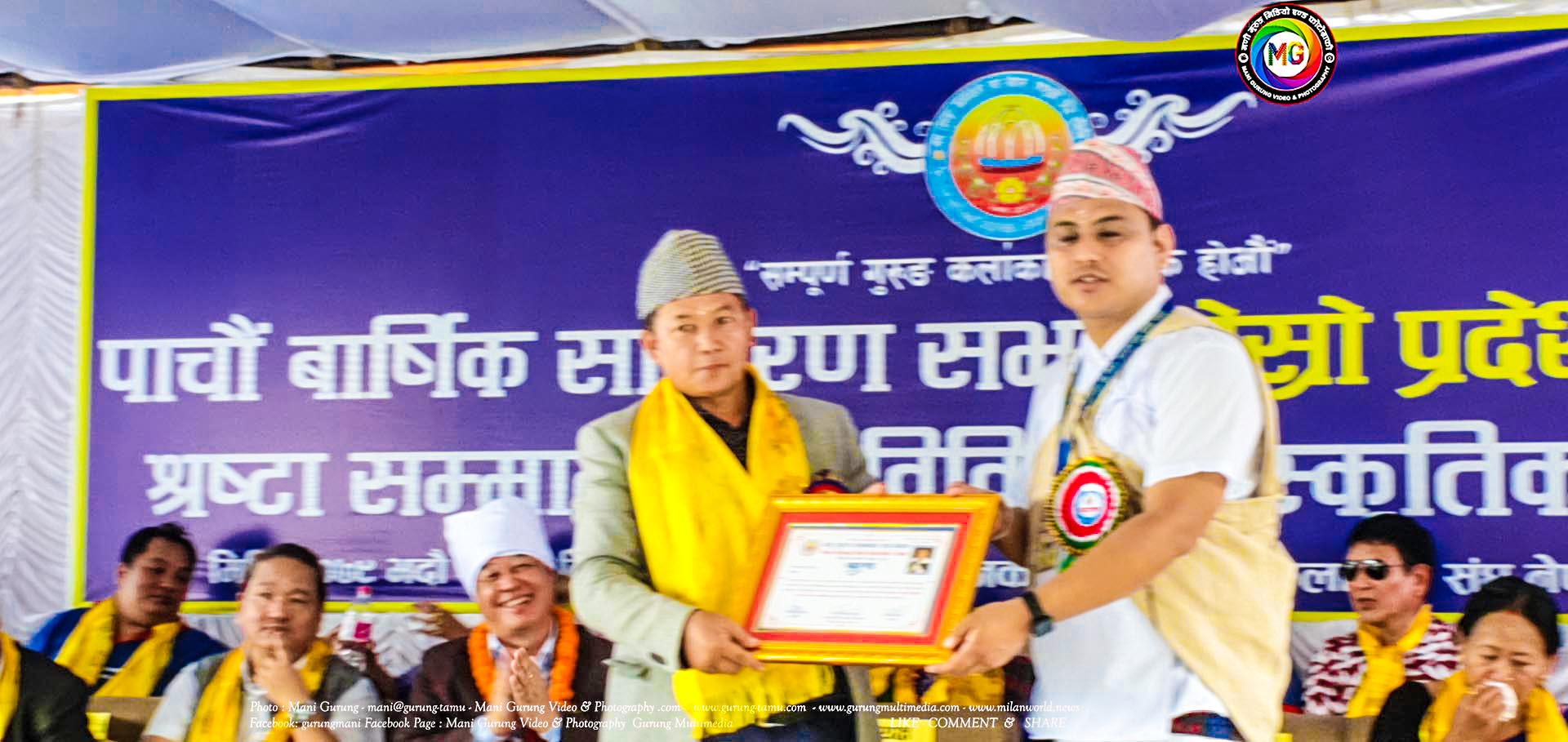 कार्यक्रममा स्व.मेनकाजी गुरुङ स्मृति पुरस्कारबाट अग्रज गायिका शान्ति गुरुङलाई नगदसहित सम्मान गरिएको थियो। यसै गरी अमेरिकाबाट आउनुभएकी गायिका ज्योति गुरुङलाई स्वागत, अन्नपुर्ण गाँउपालिका भलिबल संघको अध्यक्षमा चयन हुनुभएकोमा संघका आजीवन सदस्य एवम सहयोगी लामा अमृत गुरुङलाई बधाई ज्ञापन गरिएको थियो। यसरी नै कलाकार संघले वर्षको उत्कृष्ठ सदस्यहरुमा महिलातर्फ रबिना गुरुङ र पुरुषतर्फ दिलु गुरुङलाई सम्मान गरिएको थियो। यस्तै गरी संघको संरक्षकहरु संस्थापक अध्यक्ष दुर्गा गुरुङ र संरक्षक संस्थापक सदस्य शंकर बिरही गुरुङलाई बधाई ज्ञापन गरिएको थियो भने सहयोगीहरुलाई कदर पत्र प्रदान गरिएको थियो।