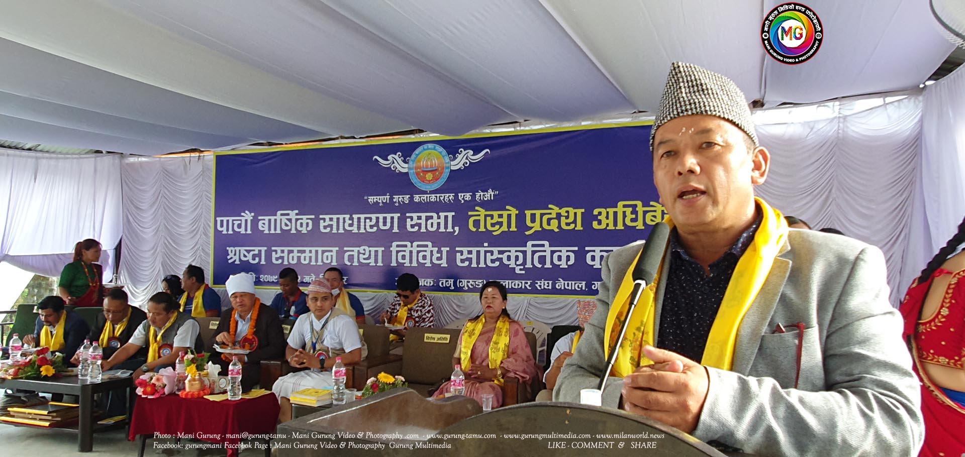 कार्यक्रममा तमु कलाकार संघका केन्द्रिय अध्यक्ष सर्मिला गुरुङ, संस्थापक अध्यक्ष राजु गुरुङ, गण्डकी प्रज्ञा प्रतिष्ठानका उपकुलपति गोरे गुरुङ, तमु धिं नेपालका अध्यक्ष हुमबहादुर गुरुङ, सल्लाहकार यामबहादुर गुरुङ, जिफानका अध्यक्ष गुञ्जबहादुर गुरुङ, राष्ट्रिय लोक तथा दोहोरी गीत प्रतिष्ठानका केन्द्रिय सचिव जिवन दाहाल, सम्मानित स्रष्टा शान्ति गुरुङले मन्तव्य व्यक्त गर्नुभएको थियो।