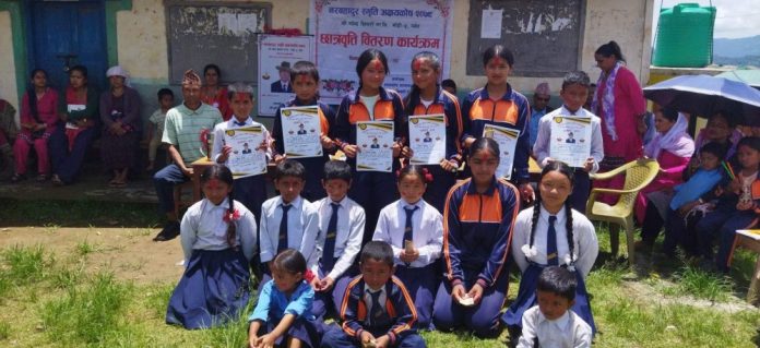 नर बहादुर गुरुङ स्मृति अक्षयकोषबाट महेन्द्र शिखरी माध्यमिक विद्यालयमा छात्रवृत्ति प्रदान