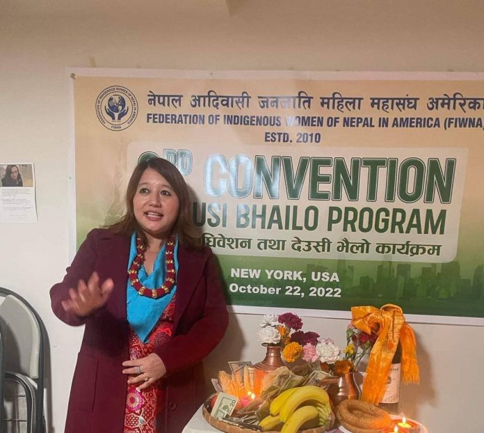 नेपाल आदिवासी जनजाति महिला महासंघ अमेरिकाको तेश्रो महाधिवेशन शनिबार न्यूयोर्क,अमेरिकामा नेपाल आदिवासी जनजाति महासंघ फिप्ना अमेरिका उपाध्यक्ष माया लामाको प्रमुख आतिथ्यमा भव्यताकासाथ सम्पन्न भएको छ । नेपाल आदिवासी जनजाति महिला महासंघ अमेरिका(फिवना)को सम्पन्न तेश्रो महाधिवेशनले इन्दिरा चोङबाङको अध्यक्षतामा उपाध्यक्ष मैना बज्राचार्य,महासचिव इन्दु लामिछाने,सचिव निमा गोले तामाङ,कोषाध्यक्ष बरमाया पुनमगर,सहकोषाध्यक्ष शुभद्रा लिम्बूगरि १९ सदस्यिय कार्यसमिति निर्विरोध निर्वाचित भएको नवनिर्वाचित अध्यक्ष चोङबाङले गोर्खाली रेडियोसँगको संवादमा जनाएकी छिन् ।