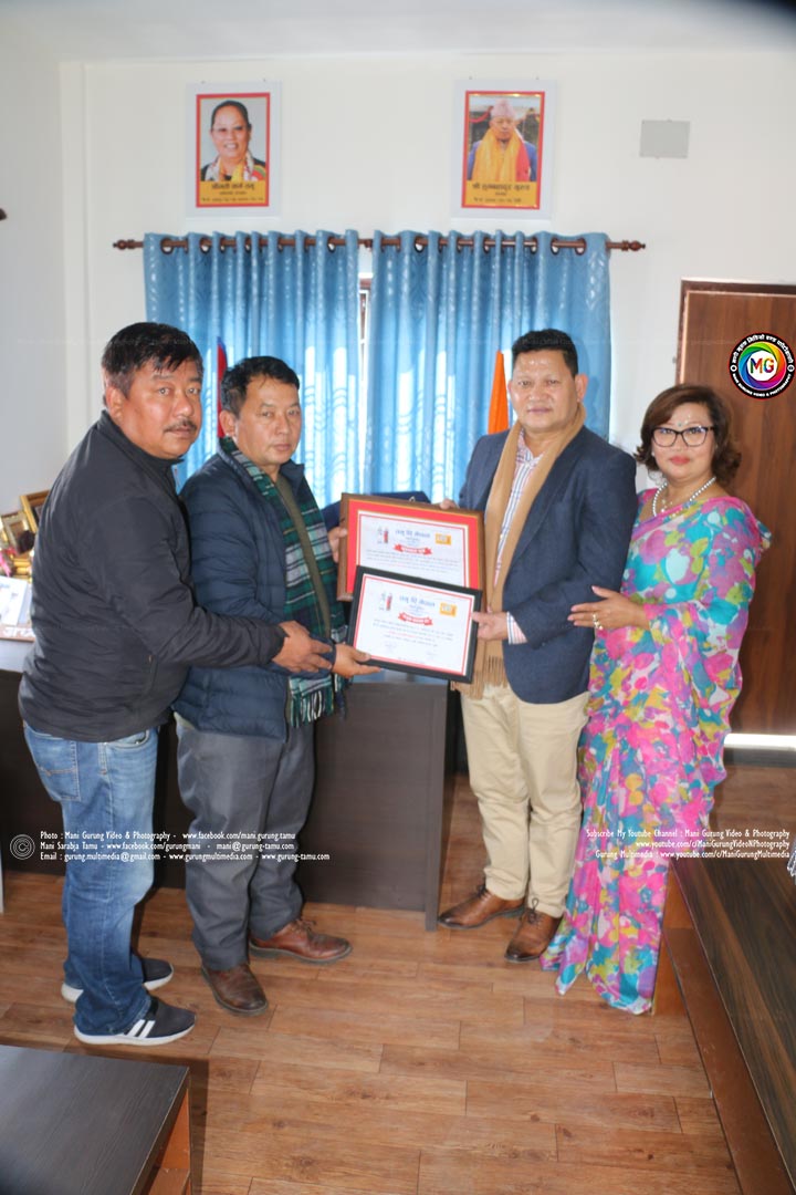 मणी सरब्ज तमु | पोखरा | माघ ११ | तमु धिं नेपालद्धारा नवनिर्मित भवन एवम प्रवेशद्धार निर्माण सहयोगार्थ एवम् संरक्षक सद्स्यताका लागि तमु प्ये ल्हु संघ युके का निवर्तमान अध्यक्ष एवम् सल्लाहकार प्रमुख पुरानो गाउ धम्पुस अहिले पोखरा १ अधिकारी टोल स्थायि घर भइ युके वेल्स निवासी मेजर खुशीमान गुरुङ (MVO) र वहाँका धर्मपत्नी मन्जु गुरुङले रु.१,००,०००/- एक लाख रुपियाँ सहयोग प्रदान गर्नुभएको छ ।