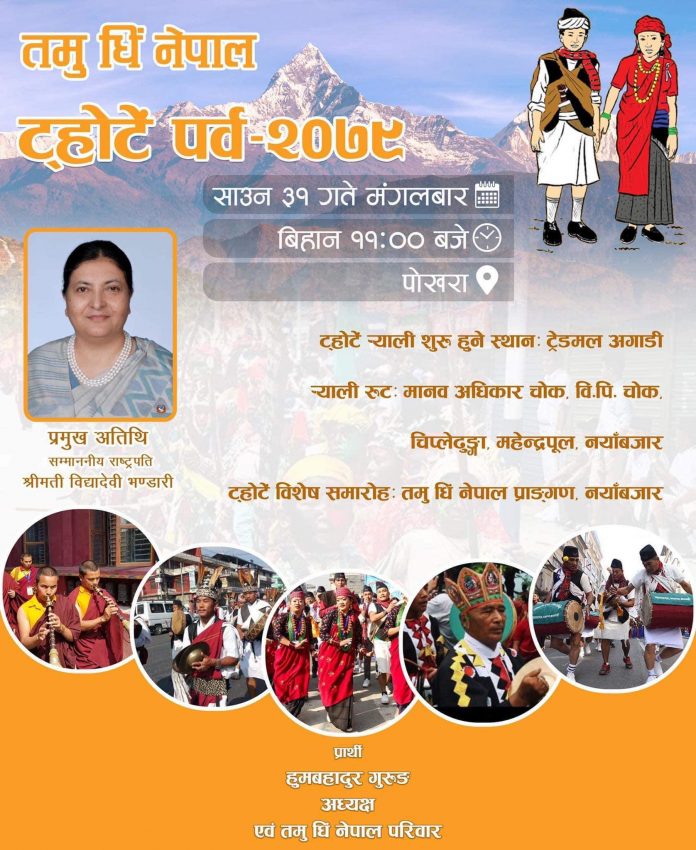 पोखरा, २८ साउन तमुहरुको ऐतिहासिक एवम परम्परागत साँस्कृतिक ट्होटें पर्व साउन ३१ गते मंगलवार पोखरामा धुमधामका साथ मनाउने भएको छ।